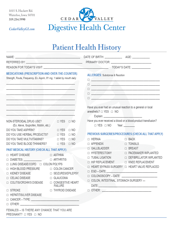 To provide the best possible care, we ask that all patients complete a health history form before their visit. This helps our team understand your medical background, current medications, and any health concerns so we can tailor your care to your specific needs.